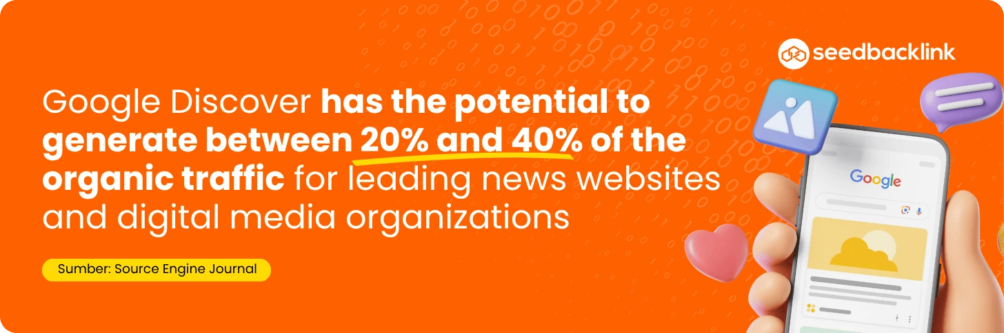 Sejumlah data dari Search Engine Journal mengungkapkan fakta penting bahwa Google Discover mampu menyumbang antara 20% hingga 40% organic traffic pada situs berita dan media digital besar. Angka ini membuktikan bahwa keberadaan konten di feed Discover dapat mendongkrak visibilitas dan jangkauan audiens secara signifikan.