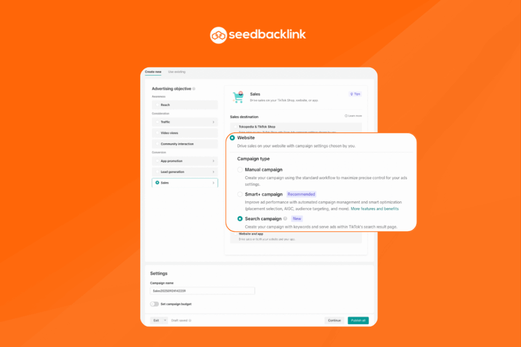 Cara Membuat Search Ads Campaign di TikTok Ads Manager